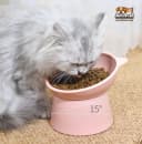 Reduce neck strain with our 15° Tilted Raised Pet Bowl. The orthopedic design helps prevent vomiting and improves digestion for cats & small dogs. Shop Pink, Grey & Green!